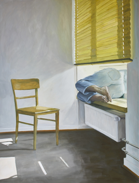 Am Fenster 09, Eitempera auf Nessel, 120 x 91 cm, 2021