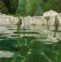 Ob See, ob Tümpel, ob Teich - Klarheit und schöne Farbigkeit erscheinen mir trügerisch, ich denke an mögliche unsichtbare Verschmutzung. Auch das Meer kann ich nicht ungetrübt betrachten. Ich denke an umhertreibendes Plastik und ertrinkende Flüchtende.